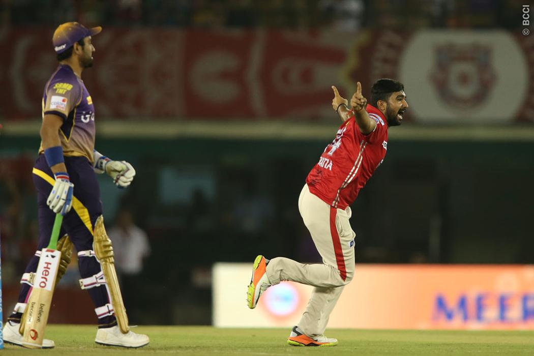In what was a crucial game for their qualification hopes, Kings XI Punjab were put into bat by Kolkata Knight Riders’ skipper Gautam Gambhir, who brought back Robin Uthappa to don the wicketkeeping gloves, replacing Sheldon Jackson. Kuldeep Yadav replaced Piyush Chawla in the other change for the Kolkata playing XI. On the other hand, demoralized by the loss to Gujarat Lions, and decimated by the loss of Hashim Amla and Eoin Morgan to national duties, Glenn Maxwell made four changes to the side by bringing in spinners Swapnil Singh and Rahul Tewatia along with Manan Vohra and Matt Henry.
