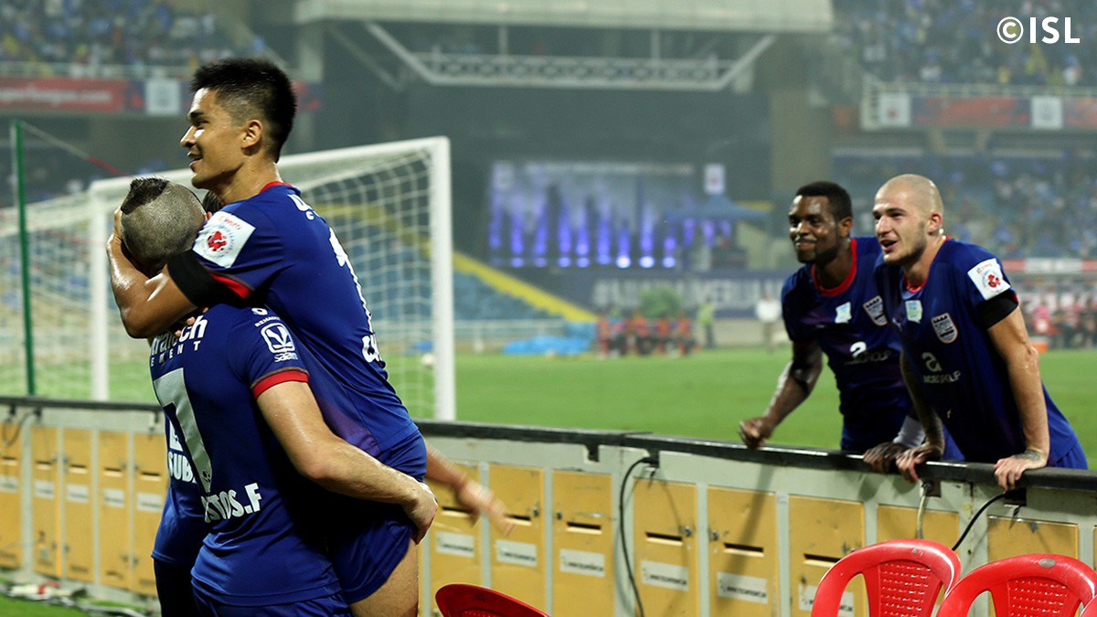 The home side opened the scoring in the 25th minute of the match as NorthEast lost the ball in their own half. Sunil Chhetri released Subhash Singh on the right wing and the 25-year-old's attempted cross was blocked by Carlos Lopez, with his hands. The referee pointed to the spot and India's star striker Chhetri stepped up and converted with a Panenka penalty!