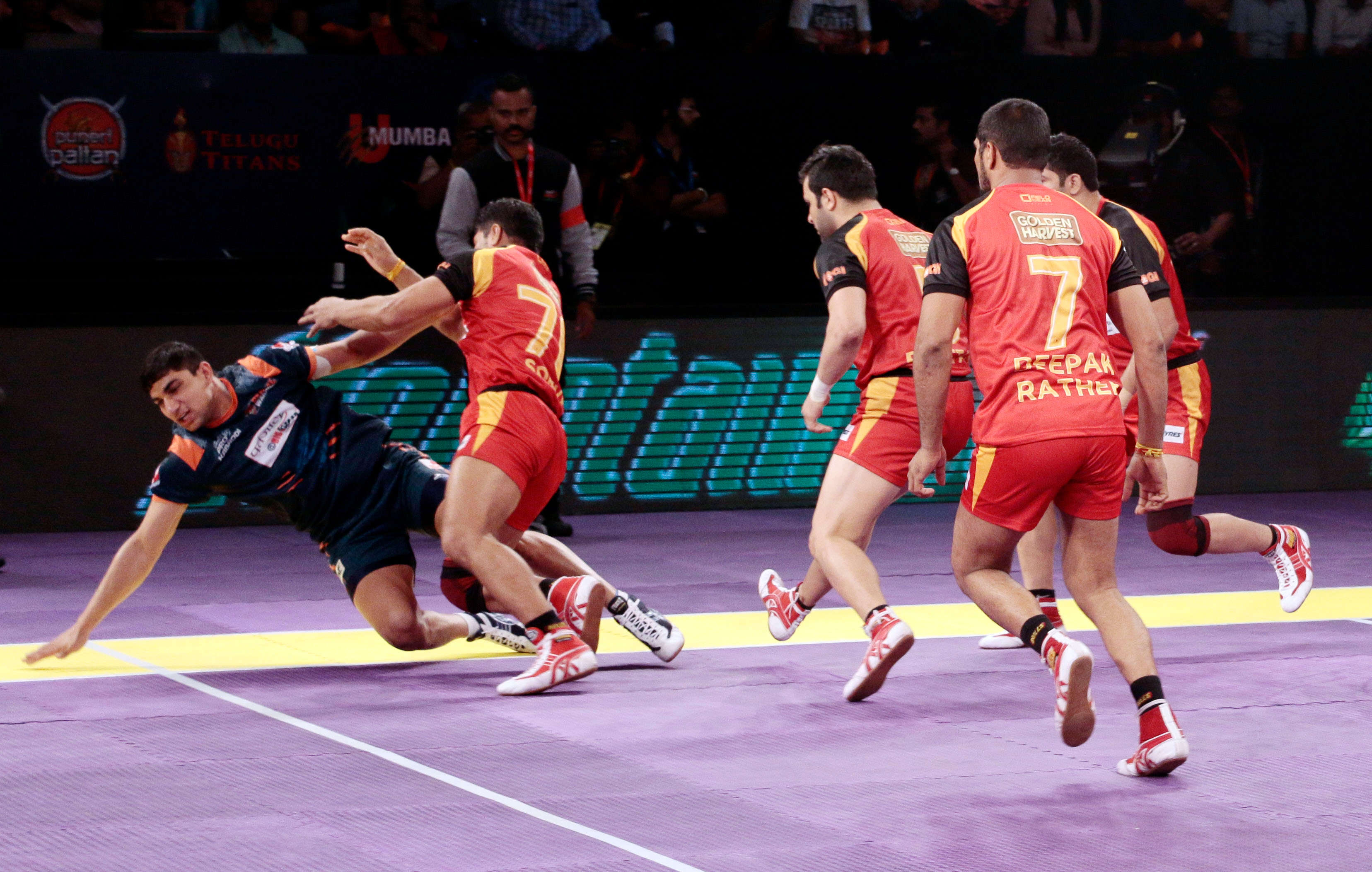Bengal Warriors came up with two super tackles, one each from Nilesh Shinde and Deepak Kumar who was playing in place of the injured Girish Ernak. It was Mahesh Goud who gave the finishing touches with Nilesh Shinde. Mahesh netted two raid points, and Nilesh Shinde trapped the slippery Vinoth Kumar.