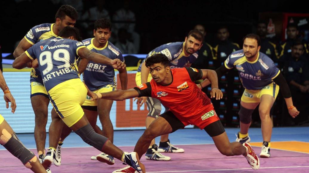 Bengaluru Bulls faced Tamil Thalaivas in their first game in a packed house in Chennai as the home crowd were creating a real ruckus to get their side a